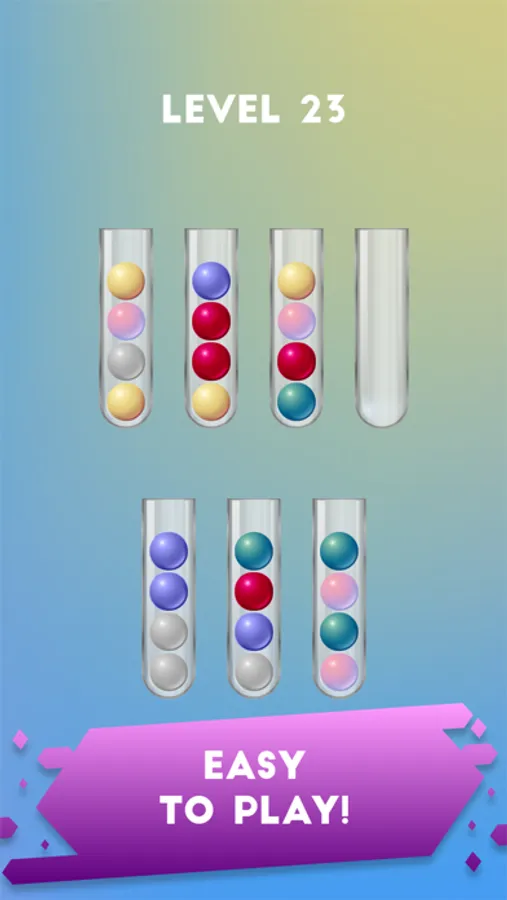 It's a fun and addictive colorful balls sorting game that's suitable for relaxing and sharpening your mind at the same time. Just tap the balls and sort the colored balls in the tubes until all the same colors are together in the same tube. This ball game is easy to learn but hard to master.