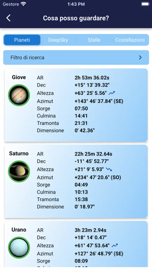 In a single application you can view the position of the Moon, Sun, Planets, Deep Sky Objects, Stars, Constellations, Space Stations and Comets!