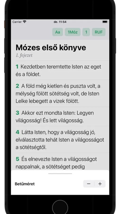 Az alkalmazás egyszerű és felhasználóbarát felülettel rendelkezik, így könnyedén navigálhat a könyvek, fejezetek és versek között. Az olvasásélmény még élvezetesebbé válik a testreszabható szövegméretek, háttérszínek és betűtípusok segítségével.Sokszor nem lehet a kezünkben a nyomtatott Biblia, ilyenkor hasznos tud lenni egy alkalmazás, segít például vasárnap délelőtt követni a tanítást, vagy gyorsan lehet megkeresni az igéket, amelyeket a tanító vagy a lelkész említ. A betűnagyságot is természetesen lehet változtatni, így könnyebbé téve az olvasást.