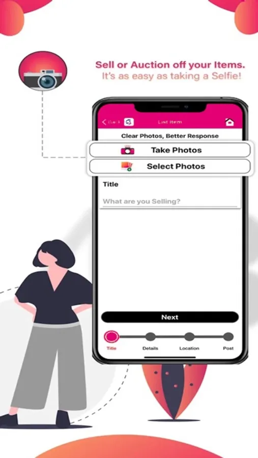 • Post your used or new stuff that you want to sell in seconds! Just take a photo, add a description and your item is ready for sale or auction. It's as easy as taking a Selfie!