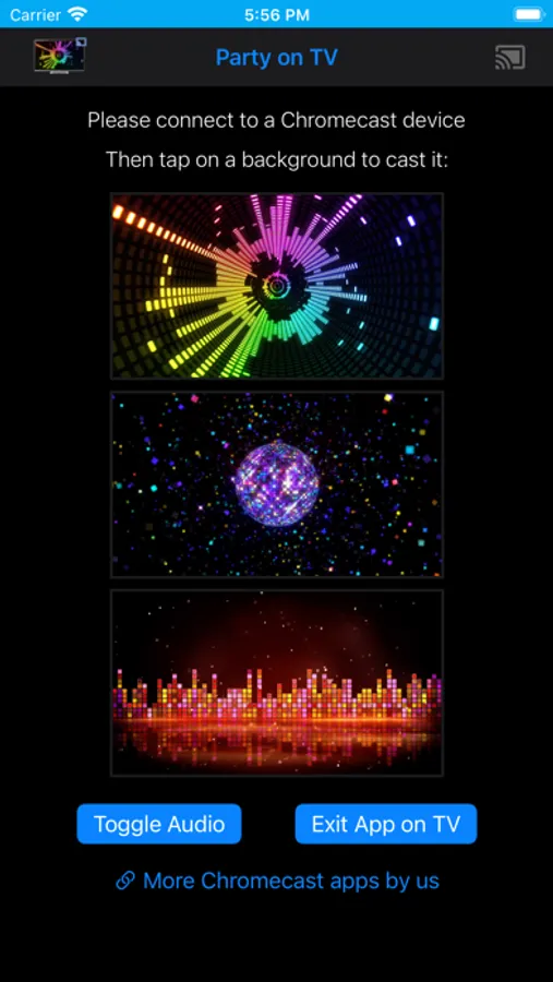 • No ads, no lags. Just fullscreen party backgrounds on the TV!
