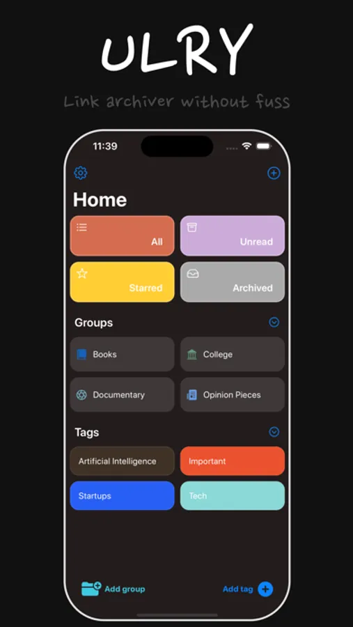But Ulry doesn't stop there - the app's smart tag and group creation features allow you to categorize and organize your links in a personalized and efficient way. Whether you're saving links for work, leisure, or personal projects, Ulry makes it easy to stay organized and find what you need when you need it.