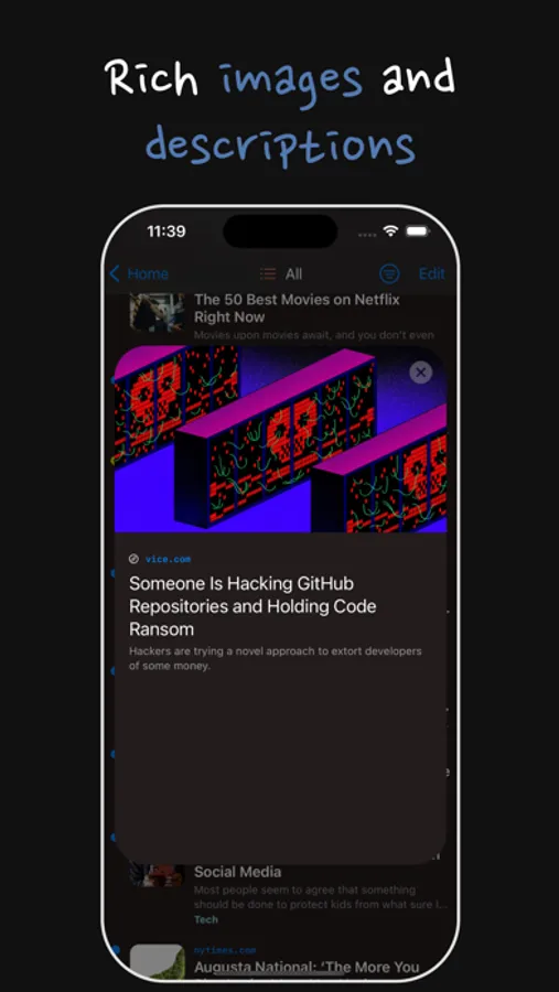 Ulry is a powerful link archiver that allows you to save and organize your favorite links and URLs in one convenient place. With Ulry, you can easily access your saved links and browse them with visually appealing images, descriptions, and titles. You can even choose to open your links within the app or in an external browser.