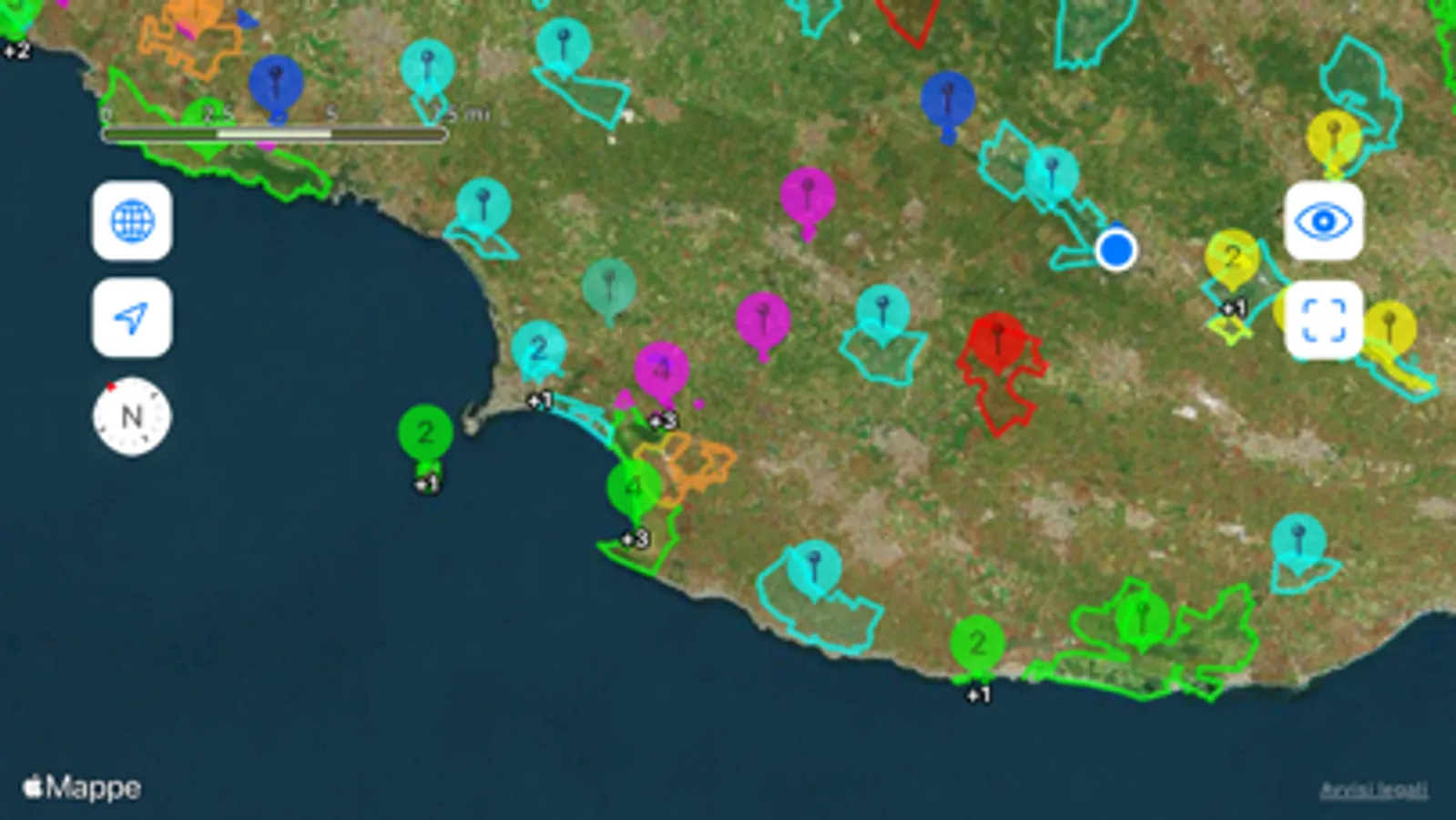 L'app provvede a visualizzare la posizione dell'utente su una mappa dove sono state proiettate le aree delle zone chiuse e protette, dove non si può esercitare l'attività venatoria.