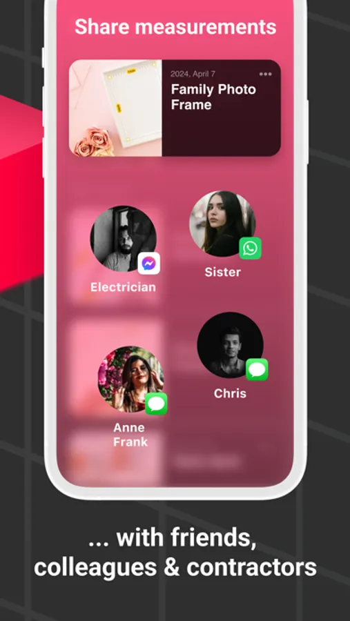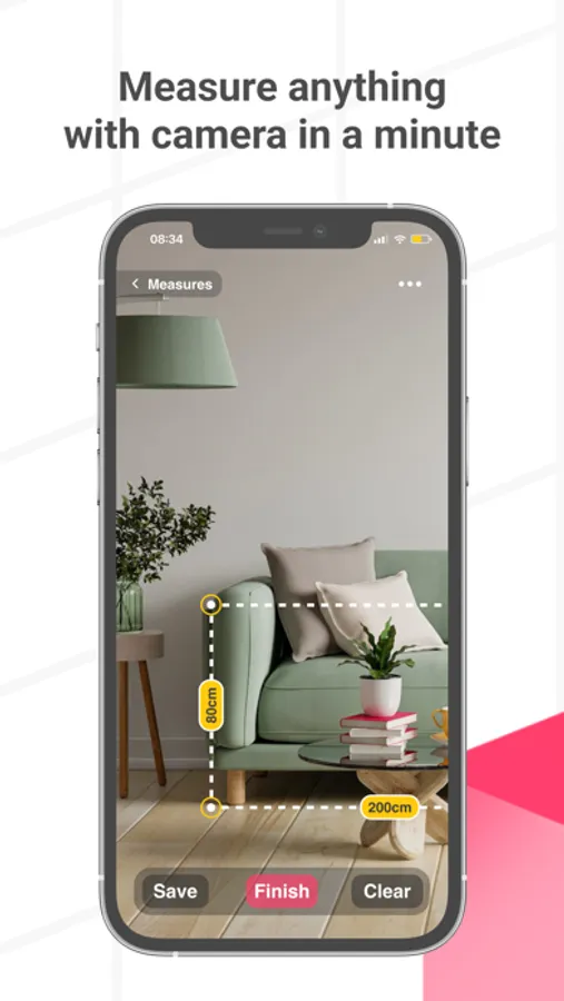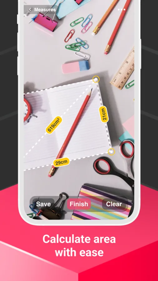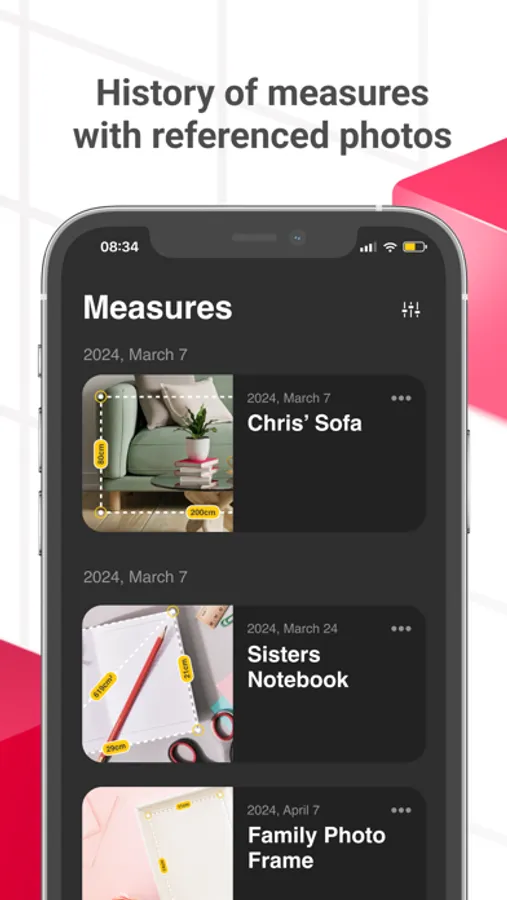 Measure objects with the camera in a few clicks. Save your measurements as sketches with photos.
