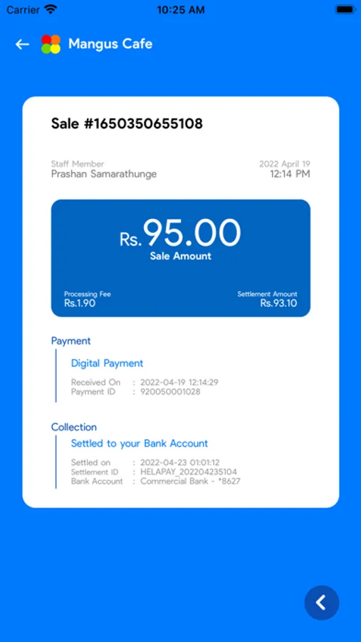 - Receiving instant notifications when the customer pays digitally through LankaQR