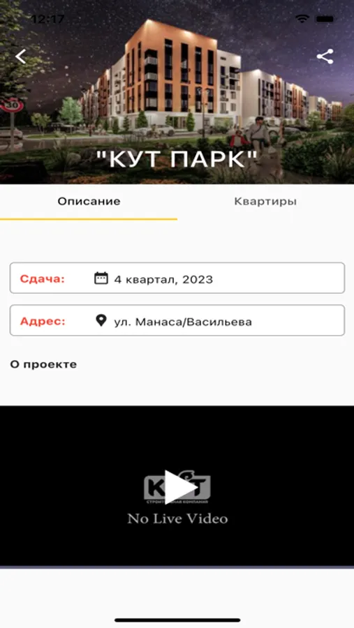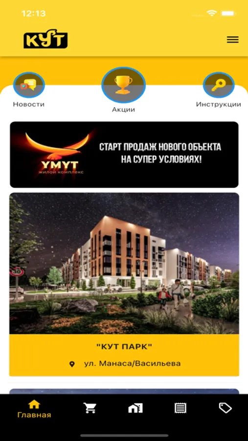 Это приложение от строительной компании “КУТ” предназначено для получения информации об объектах и квартирах. В приложении найдете адреса и фото строящихся объектов и их цены. Можете поделится с друзьями и родственниками инфо об понравившуюся квартире.