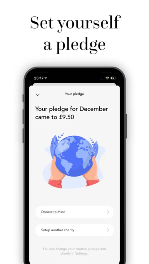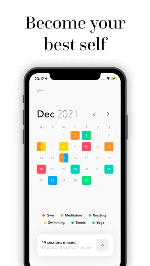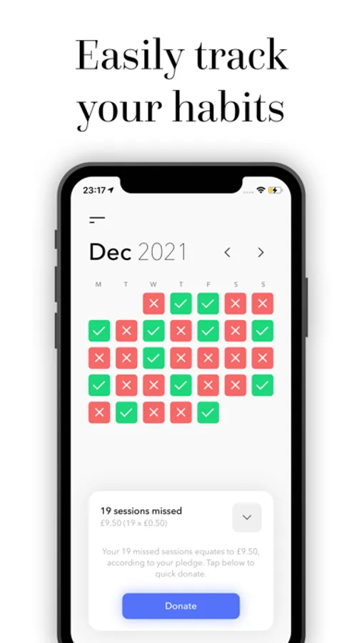Track activities, setup routines and go even further by setting up a pledge. For each session or activity that you miss, you can pledge a small amount to charity. Pattern can keep track of this pledge for you and let you know how much it came to after each month.