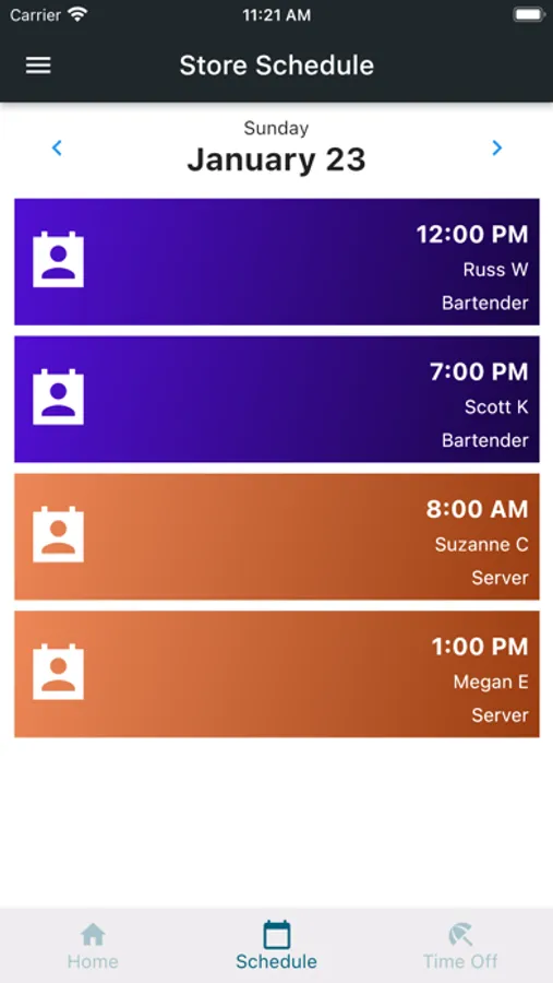 Staff can view their schedule, update availability, request time off, and trade their shifts with the BarSight Scheduling App.