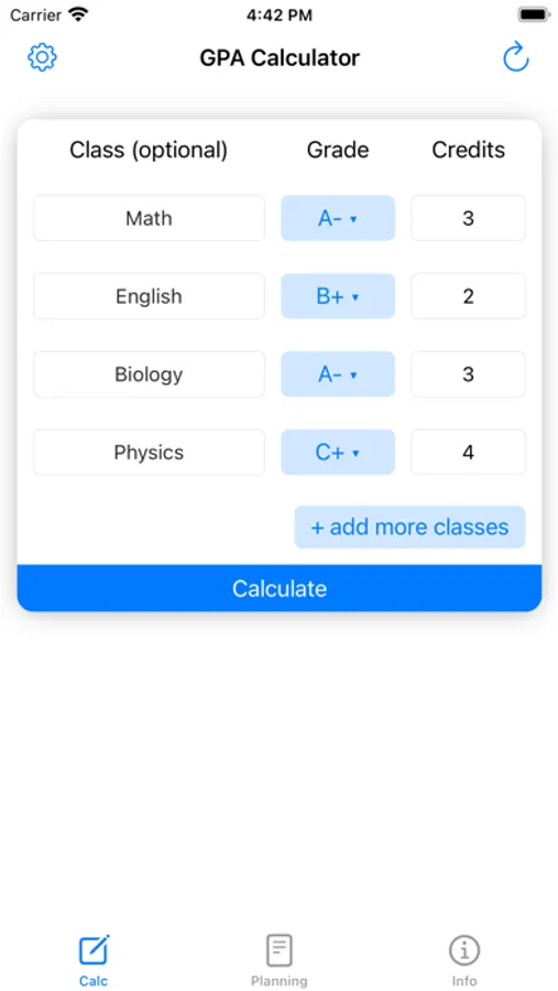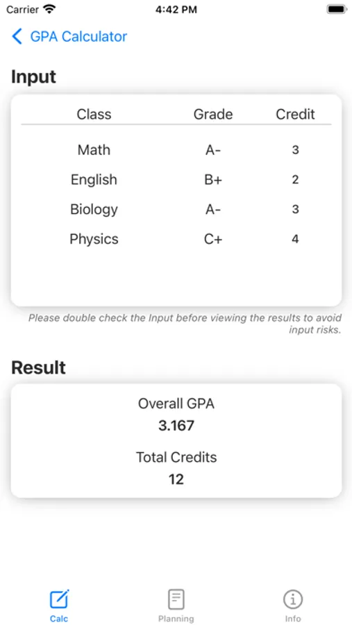 Use this App to calculate grade point average (GPA) and generate a GPA report. We also provide a tool to determine the minimum GPA required in future courses to achieve the desired GPA. This is a very intuitive App, simple and easy to use.