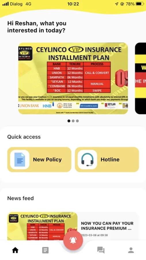 On the go, keep track of your insurance coverage. Customers of Ceylinco General Insurance can easily manage their Motor & CHP Insurance plans with the Ceylinco Customer app. You have access to make quotation for 3rd party and CHP, View Claim History, Inform an Accident and Policy payments.