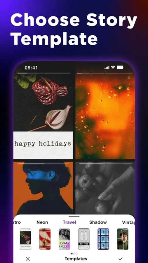 * Choose from a variety of IG story templates, suitable for various life occasions. Edit photos with Instagram collage layouts and story templates to become a skilled story maker.