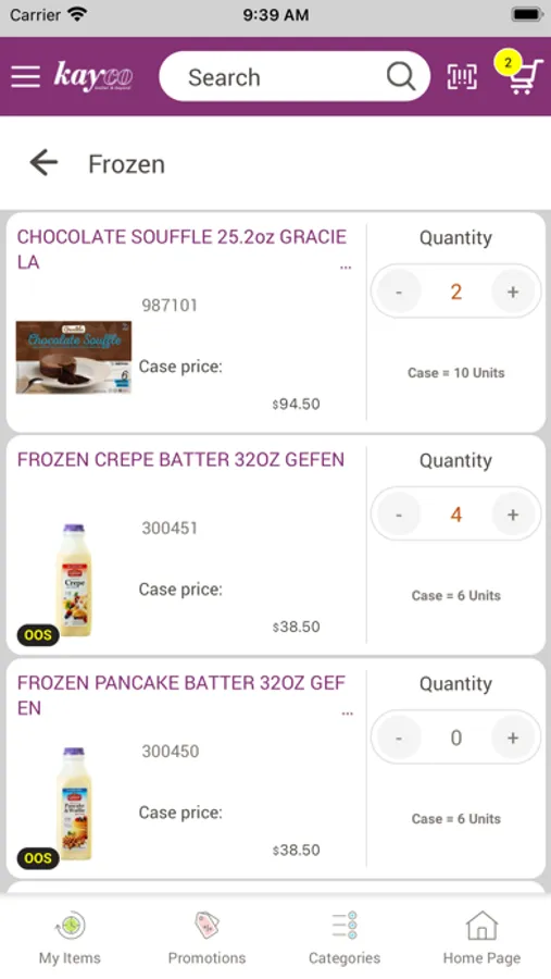 With the Kayco’s B2B app you can place your orders anytime, anywhere with a simple to use and intuitive mobile app. Discover new products, find new promotions, check your open invoices and much more!