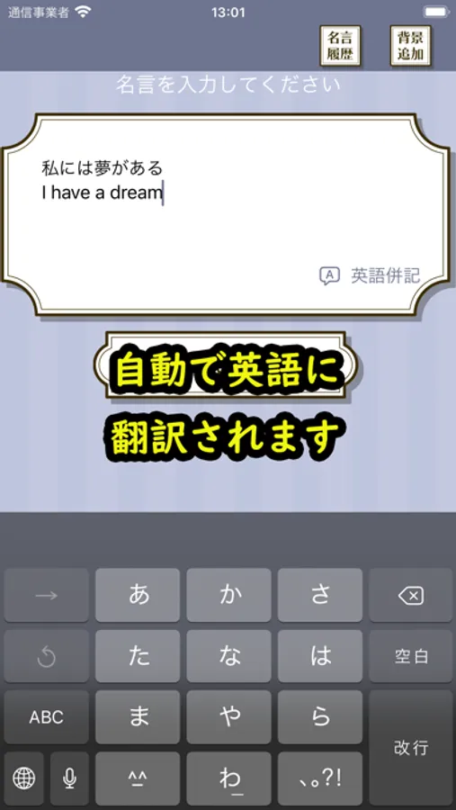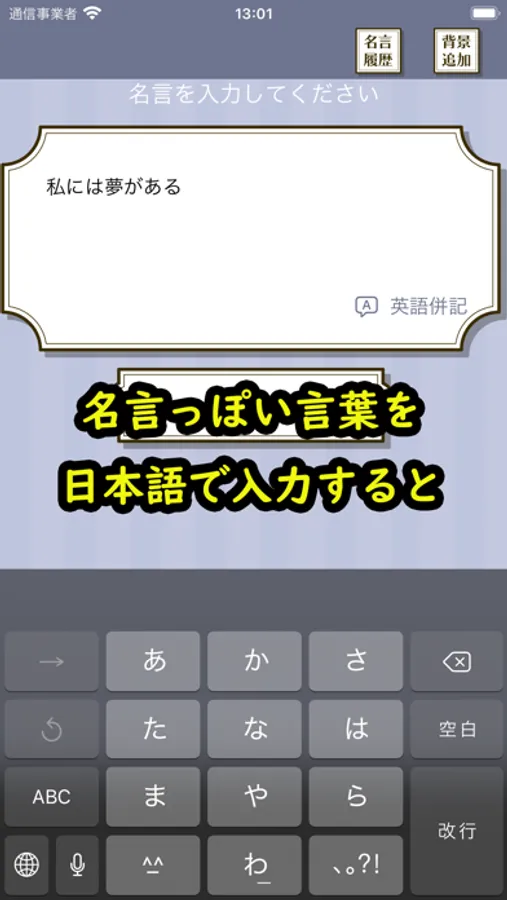 1.名言っぽく仕上げたい言葉を日本語で入力します。