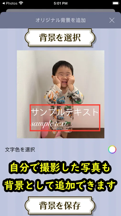 デフォルトの背景以外に、オリジナル画像も追加すると、