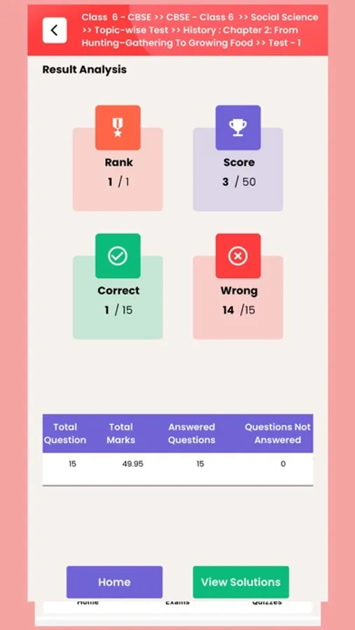 - User can view their results, solutions/explanations and performance analysis of the tests taken instantly.