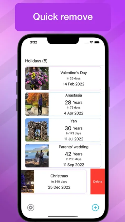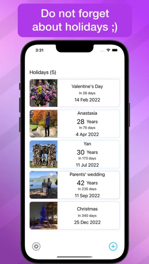 The application will remind you of the dates of birthdays, holidays, anniversaries and events. Thanks to a convenient and simple interface, you will quickly make your list and never again forget about the important events in your life.