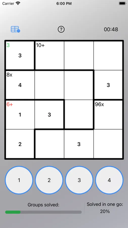 The free version allows you to play unlimited 3x3, 4x4 and 5x5 Calcudoku puzzles; if you want to move on to 6x6 and 7x7 puzzles you can buy the full version. In any case: