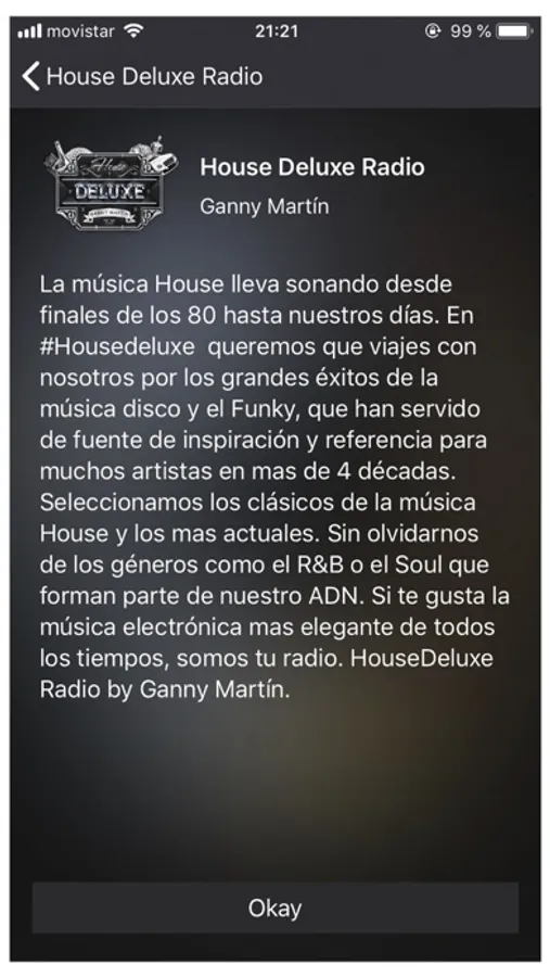 La música House lleva sonando desde finales de los 80 hasta nuestros días. En #Housedeluxe queremos que viajes con nosotros por los grandes éxitos de la música disco y el Funky, que han servido de fuente de inspiración y referencia para muchos artistas en mas de 4 décadas. Seleccionamos los clásicos de la música House y los mas actuales. Sin olvidarnos de los géneros como el R&B o el Soul que forman parte de nuestro ADN. Si te gusta la música electrónica mas elegante de todos los tiempos, somos tu radio.