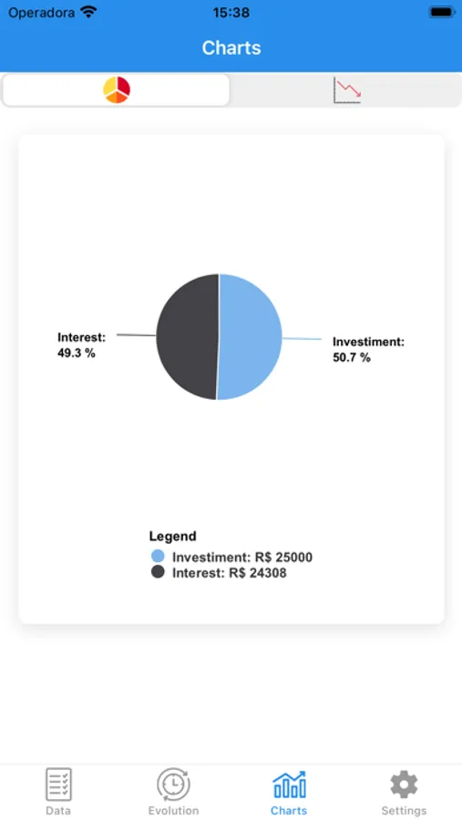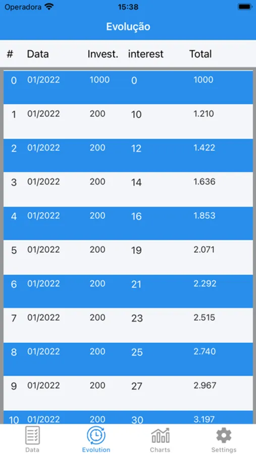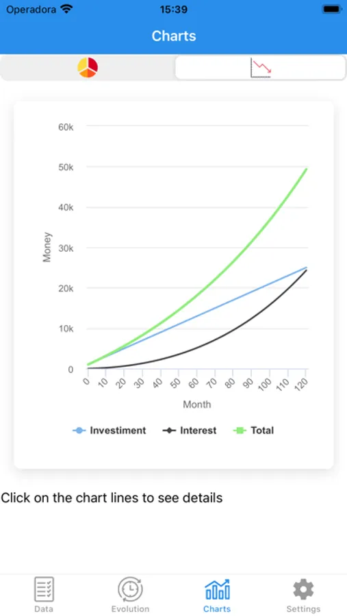 The Investment Simulator application also shows a table and a graph showing the evolution of capital.