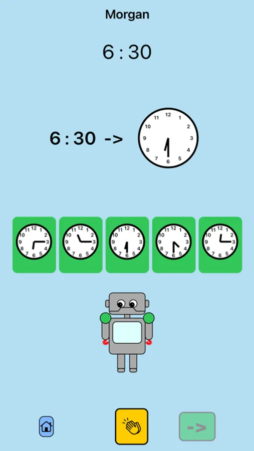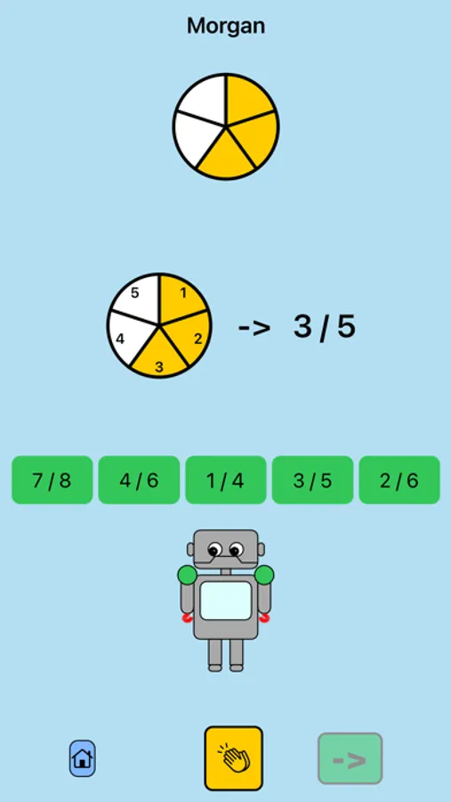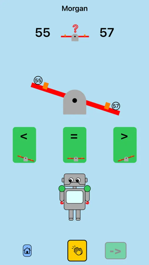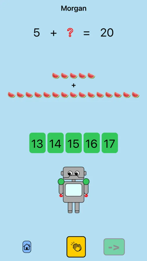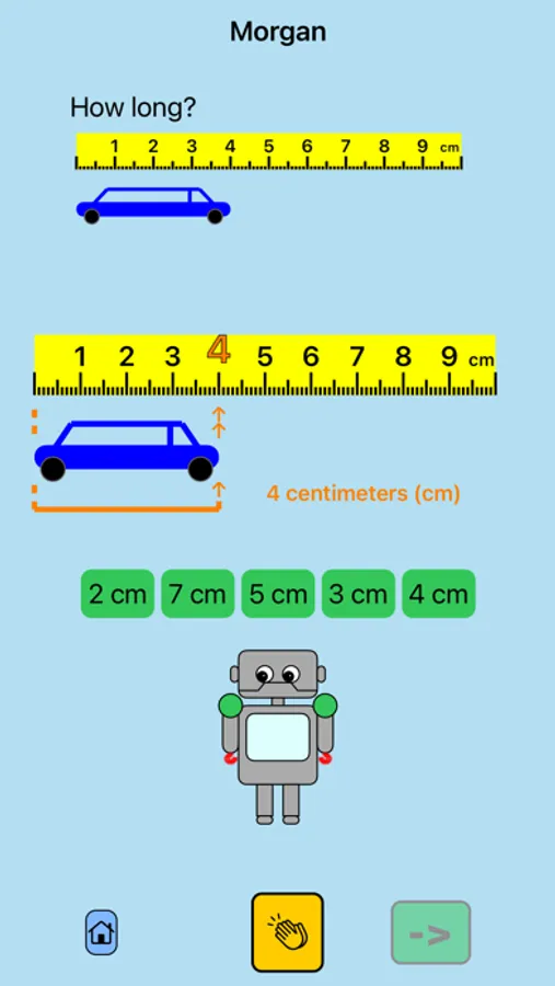 If the child enters an incorrect answer, a hint image appears. After 2 incorrect answers, incorrect answer buttons become disabled on each further incorrect answer until only one is left.