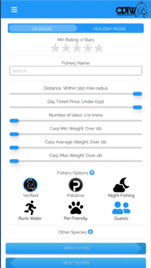 CDTW is a community built fishing lake map. You can add new fisheries, use our handy filters to search for your next target lake, leave reviews and submit catch photos.