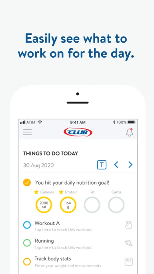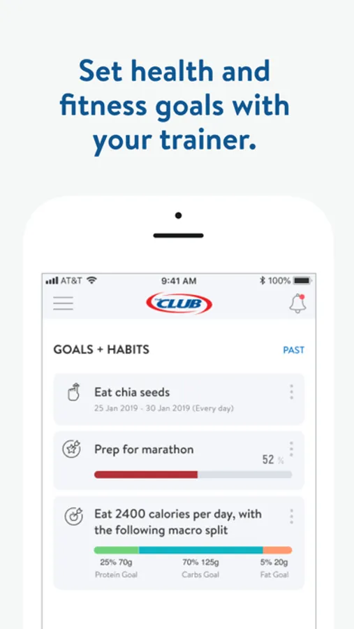 With the The CLUB App, you can start tracking your workouts and meals, measuring results, and achieving your fitness goals, all with the help of your personal trainer.