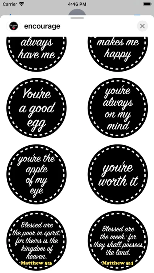 This is a collection of stickers devoted to words of encouragement, with verses from Scripture such as the Beatitudes from the Book of Matthew, Douay Rheims Bible Version.