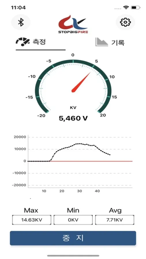 6. "중지"후 "기록"메뉴 선택