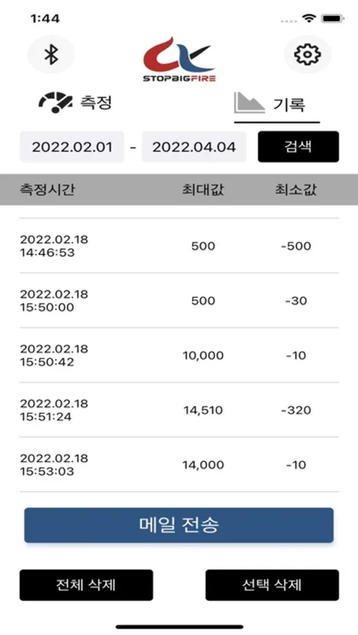 7. "기록"메뉴에서 측정한 데이터 확인