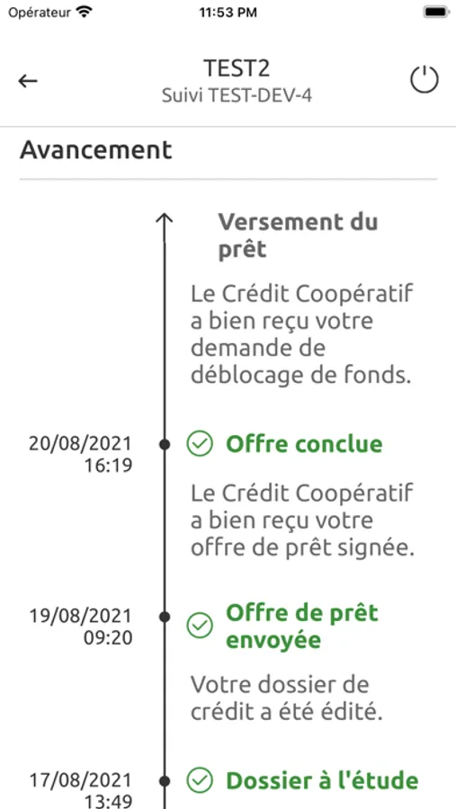 Grâce à la référence de votre demande que le Crédit Coopératif vous a communiqué, vous retrouverez dans cette application les informations concernant chaque étape du traitement.