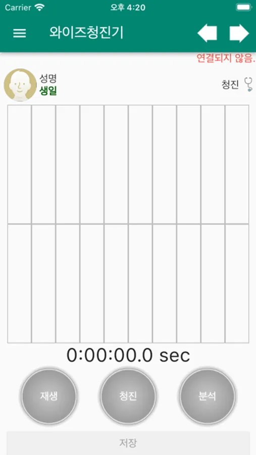 추후 분석기능으로 sonogram 을 심박수 계산 및 표시할 예정입니다.