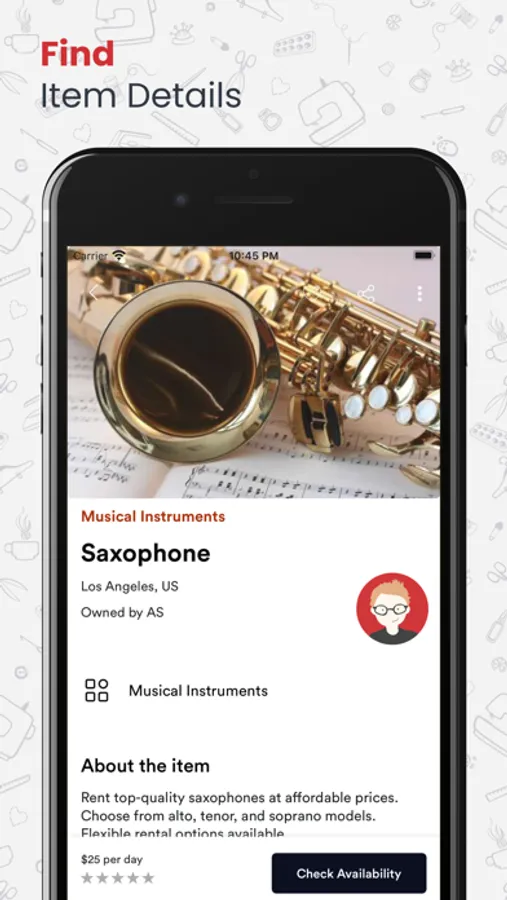 • Find available dates to rent.
