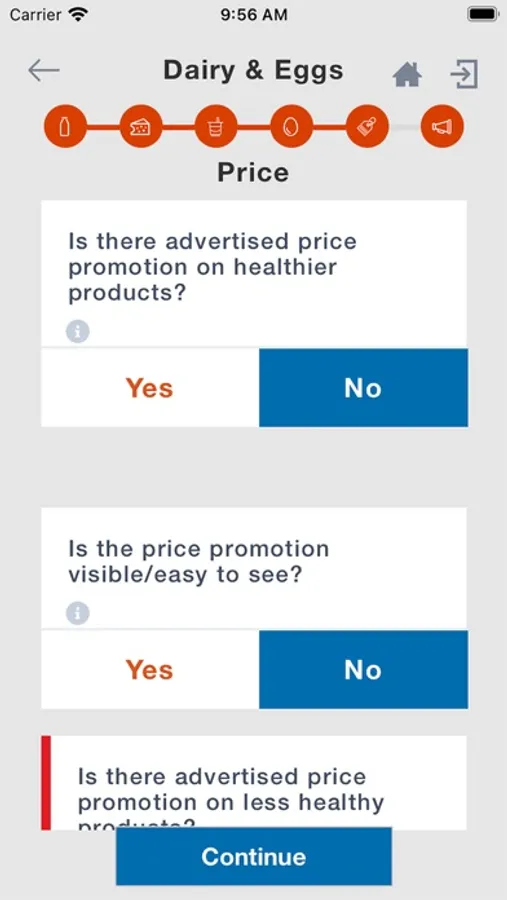 The App generates store environment index scores related to the 4Ps of marketing (Promotion, Price, Product, Placement) and categorised by the key food sections fruit and vegetables, drinks, snack food, meals/convenience foods, bread and cereals, meat and seafood and dairy and eggs. It also includes a store manager survey.