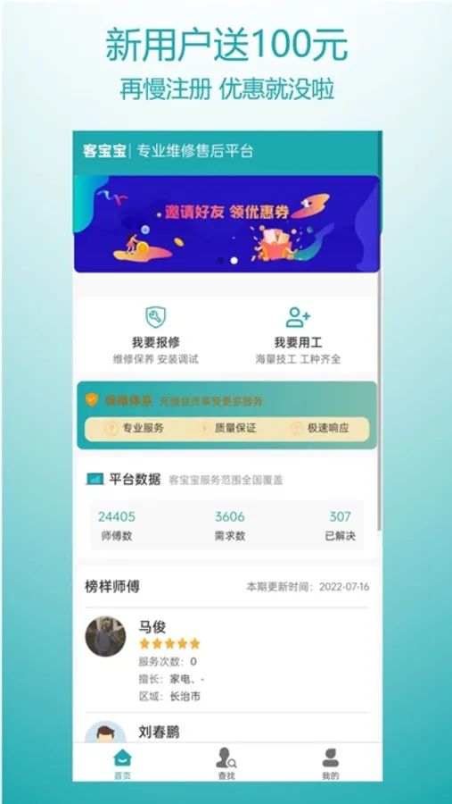 客宝宝在线找维修找师傅,助力工业设备智能售后服务