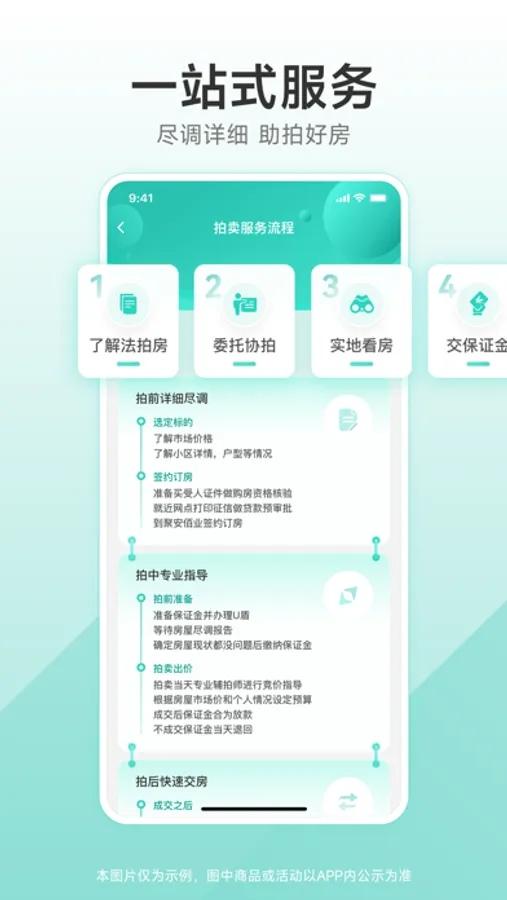 【一站式服务】拍前标的选定,线上签约订房,详细尽调;拍中协助缴纳保证金,竞价指导;拍后银行面签贷款,缴纳尾款,办理产权证,物业交割,交房换锁。