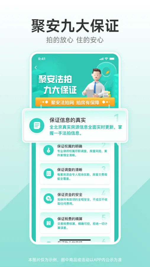 【九大服务保障】保证信息的真实,保证权属的明确,保证调查的清晰,保证资金的安全,保证税费的精算,保证物业的交接,保证交易的透明,保证安心的入住,保证费用的实收。