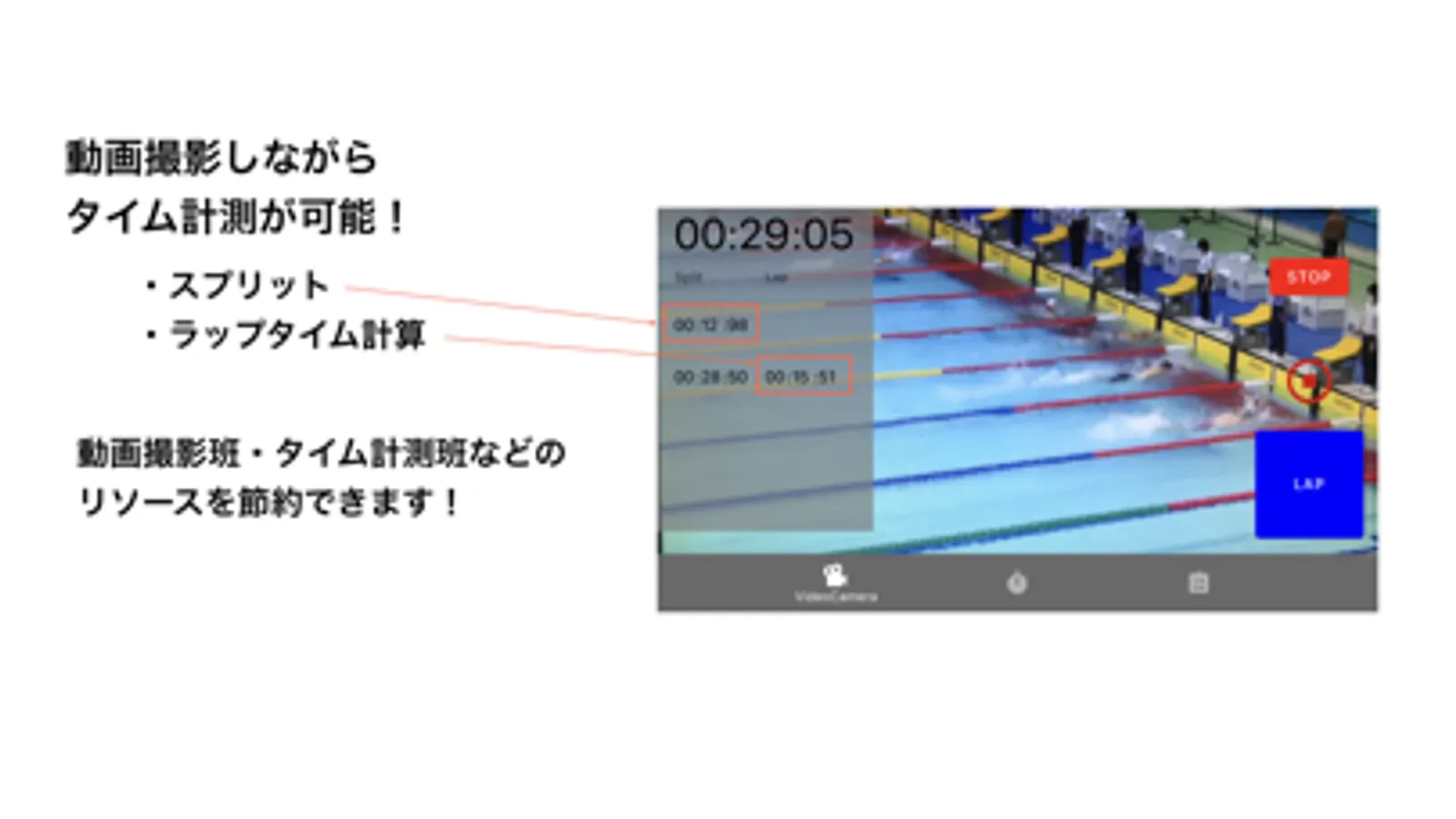 元々は水泳や陸上のレースを動画撮影・タイム計測するように開発しましたが、同様の用途であればいかなるスポーツにも活用可能です。