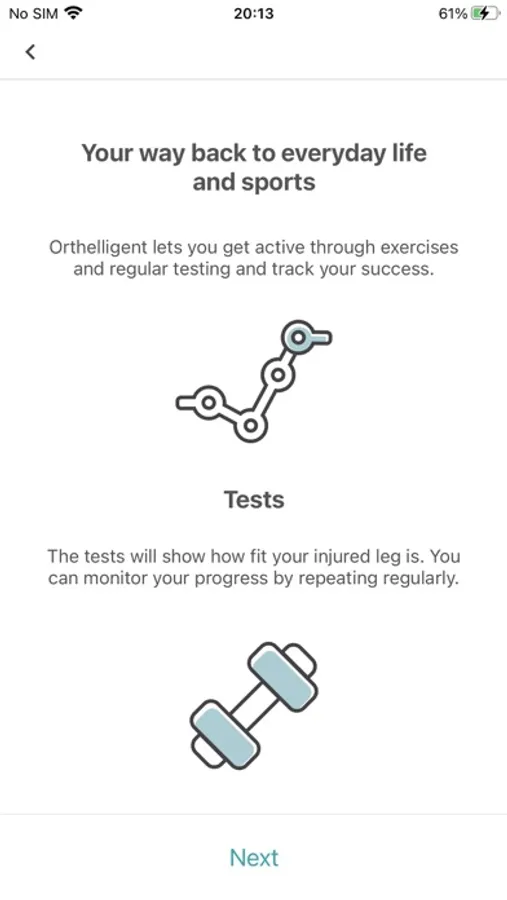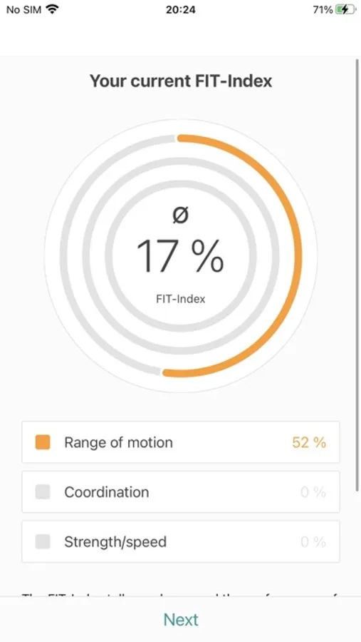 Orthelligent Home supports your training after orthopedic and/or trauma surgery diseases. The Orthelligent Home app guides you through the various movement exercises and tests. The associated sensor records movement parameters, the app analyzes them, evaluates them and then gives direct feedback. These analyzes and evaluations provide conclusions about the individual healing process. For evaluation, the measurement results of the injured side are compared with the opposite side - this value is shown in the app as a FIT index and can show the course of therapy more clearly and objectively with further information in the course analysis. Internationally, the Limb Symmetry Index (LSI) is used here. The FIT index or LSI can also be further analyzed in subcategories, which are then displayed in different colors per category. The integrated training program provides support in the home environment.