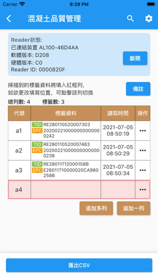 中鼎工程專用,超高頻RFID試體管理應用程式
