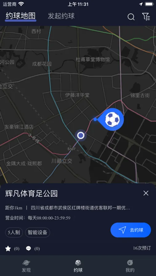 打造多球场线上约球体系,用户可以打开APP轻松订场、约场;将传统足球运动线上化;