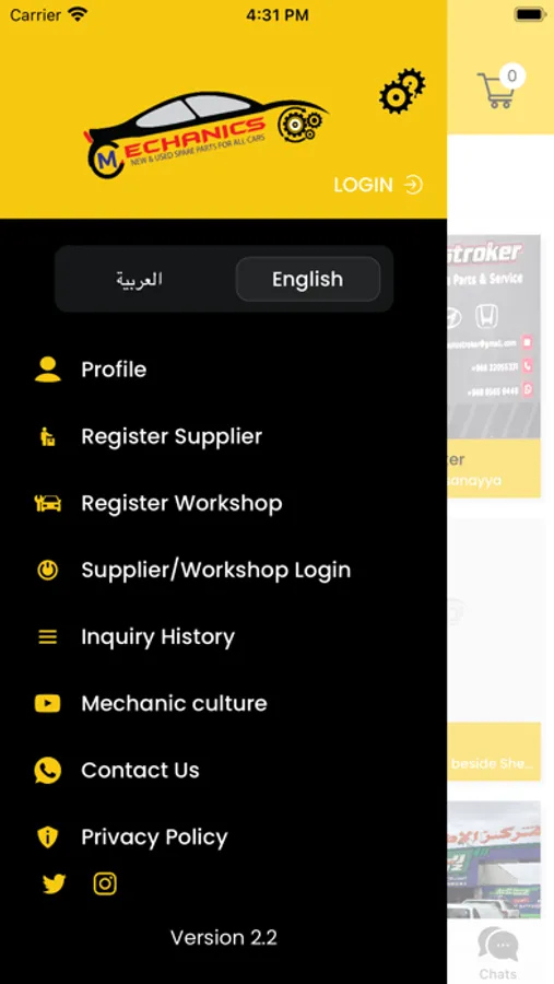 Mechanics is an electronic application that specializes in providing mechanical services, identification or combination of related parties in the field of selling new (original and commercial) spare parts, used spare parts, providing repair and maintenance services, roadside services and other services related to cars, trucks, equipment, bicycles and other services. The means of land and sea transportation, and the idea of the application consists of a commercial intermediary that brings together its clients from providers and seekers according to the terms that will be agreed with them through contracts concluded with them or by the terms contained in the current or amended privacy policy.