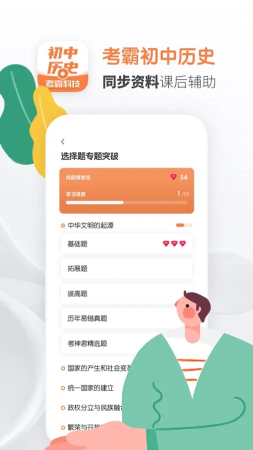 合理规划碎片时间,减轻孩子们过重作业负担,在家不用家长辅导,就能自觉自主复习的提分利器考霸【初中历史】