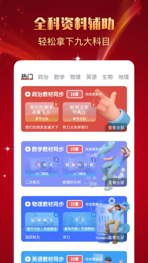智能工具辅助,教辅专区,全科知识点高清使用,错题本、笔记本,合理智能归类每一次做题记录,搭配每一组章节答题,分配更智能!