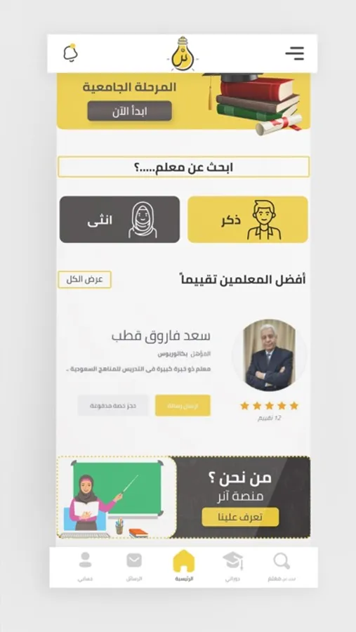 - منصة أنر هي منصة إلكترونية تقدم خدمة التدريس الخصوصي عن بعد (online) لطلاب وطالبات المرحلة المتوسطة و الثانوية والجامعية وتعتمد علي مبدأ الاقتصاد التشاركي حيث تقوم بدور الوسيط للربط بين المعلمين والطلاب- منصة أنر هي منصة إلكترونية تقدم خدمة التدريس الخصوصي عن بعد (online) لطلاب وطالبات المرحلة المتوسطة و الثانوية والجامعية وتعتمد علي مبدأ الاقتصاد التشاركي حيث تقوم بدور الوسيط للربط بين المعلمين والطلاب