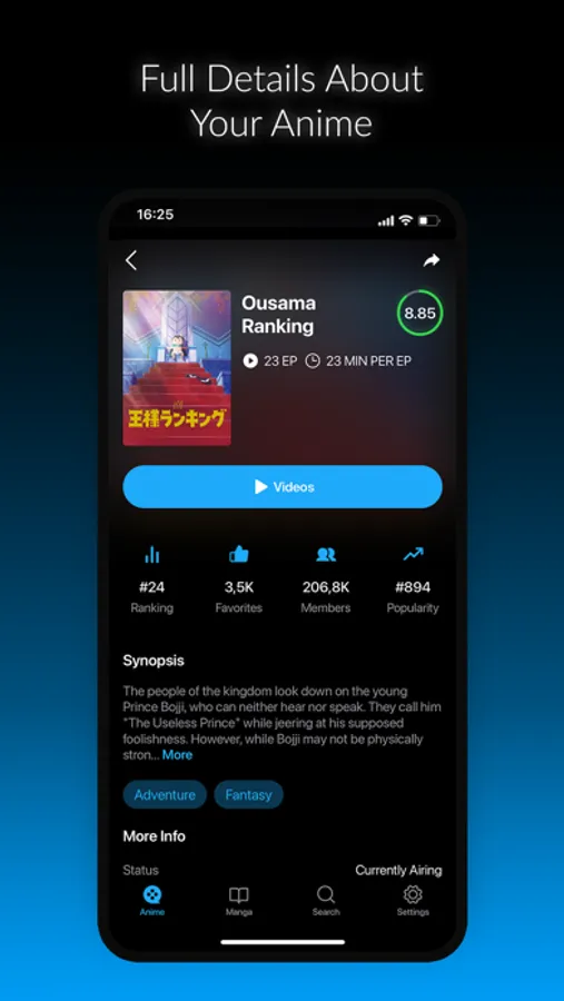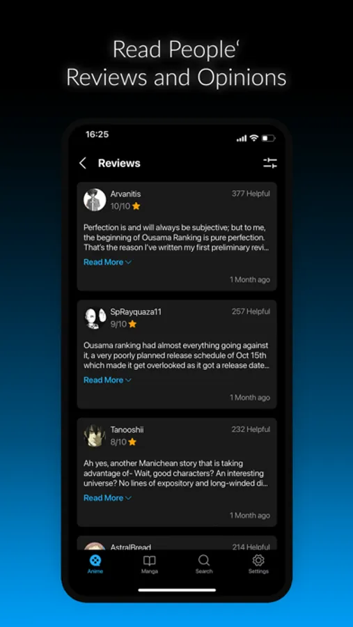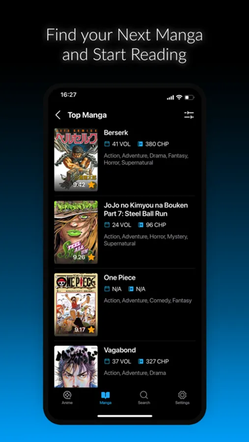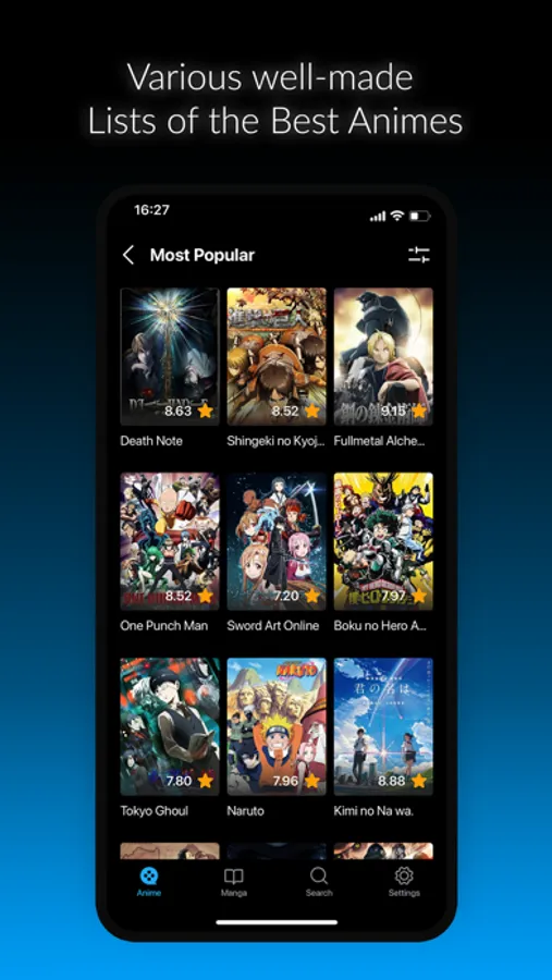 Finding a new anime or manga is tricky. Thus, AnimeX brings ready-made lists of the best anime and manga based on their ranking, popularity and user score.