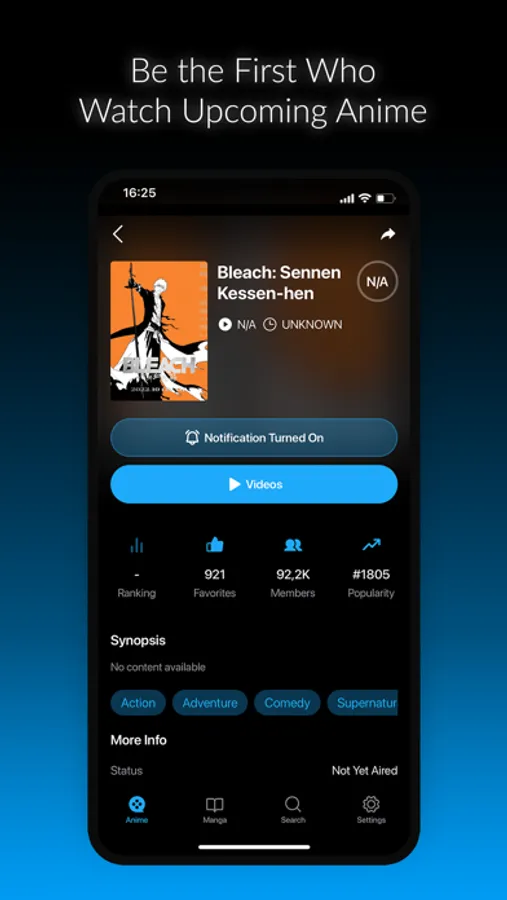 No hurry! You will never miss an upcoming anime, just turn ON notification, and we will notify you when it's started to air.