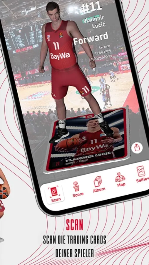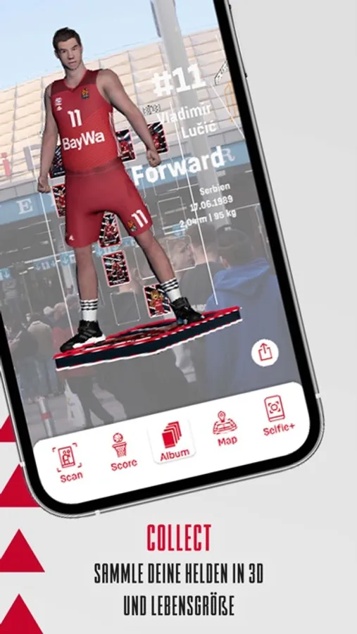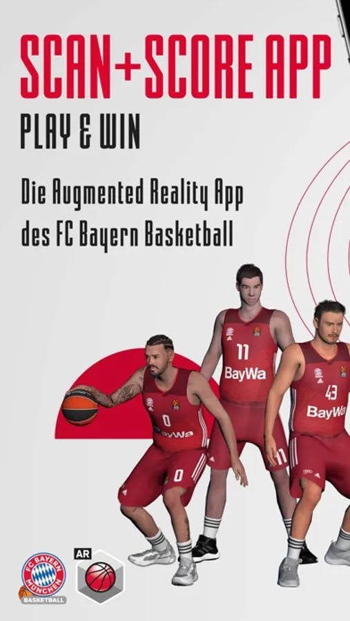 Scan, Score, Collect & Win! Diese Augmented Reality-App des FC Bayern Basketball hat so einiges zu bieten: Sammle 3D-Avatare der Bayern-Spieler in Lebensgröße für dein zu Hause, wirf virtuelle Körbe immer und überall und finde die Highlight Spots im Audi Dome. Sammle Punkte, Level Up und steige zur FCBB-Legende auf!