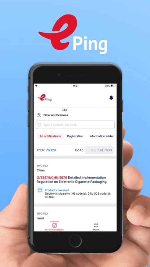 Want to stay abreast of upcoming changes in product requirements in your export markets? ePing can help! Use the ePing application to browse updates on product requirements of the 164 WTO countries/territories. Once you have subscribed on the ePing website (www.epingalert.org) indicating markets and products of interest to you, you can log into the app on your smartphone or tablet to receive personalized information on these new requirements.