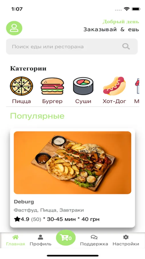 Наше приложение предназначено для заказа еды из лучших ресторанов Вашего города. У нас доступны на выбор категории еды: Суши и роллы, Фастфуд, Пицца, Бургеры, Wok. На главной странице доступны лучшие рестораны для заказа еды. При выборе ресторана будут доступны все блюда этого ресторана. После выбора блюд (можно делать заказы только из 1 ресторана, при выборе блюда из другого ресторана товары заказа из предыдущего ресторана удаляются автоматически) переход в корзину, чтобы убедится, что заказ сделан правильно, после этого переход на страницу с оформлением заказа, ввод данных для доставки: имя, номер телефона(для связи), email(для отправки чека), адрес доставки, пожелания к доставке, информация о аллергии. После оформления заказа в реальном времени будет происходить отслеживание заказа. Когда заказ будет у Курьера, это будет отображаться на карте (местоположение курьера).